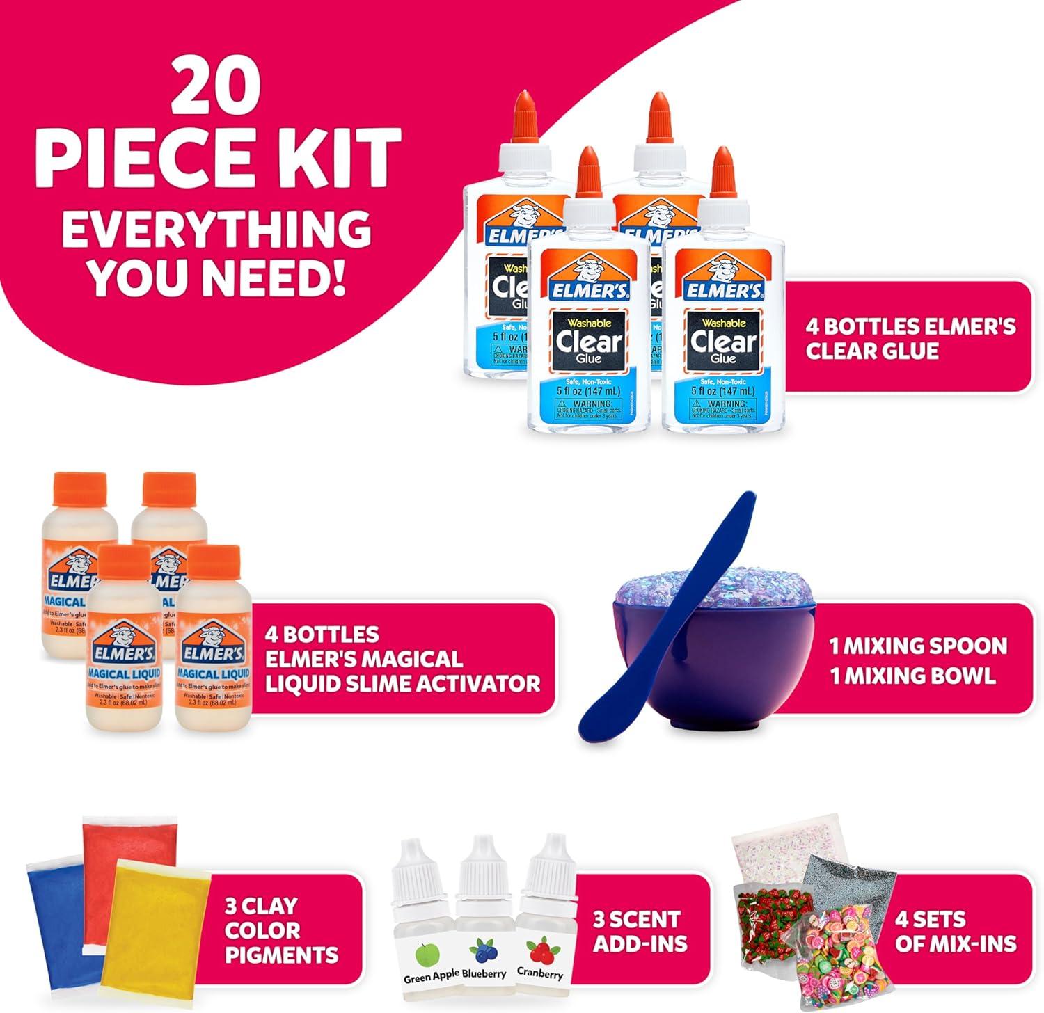 Elmer's Fruity Fusion Slime Kit, Includes Elmer's Clear Glue, Magical Liquid Slime Activator, Clay Color Pigments, Scents, Mixing Bowl, Spoon, 20 Piece Kit